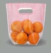 青果物の立体陳列などに最適な透明手提げ袋です。