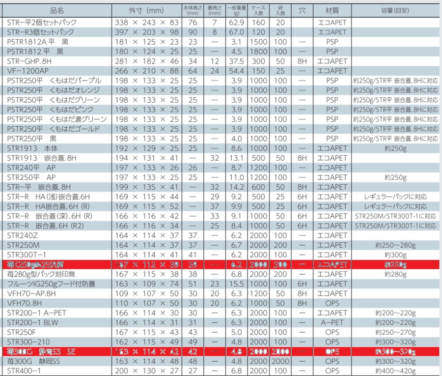 ●容量(目安):イチゴ約250g/STR平 嵌合蓋.8Hに対応